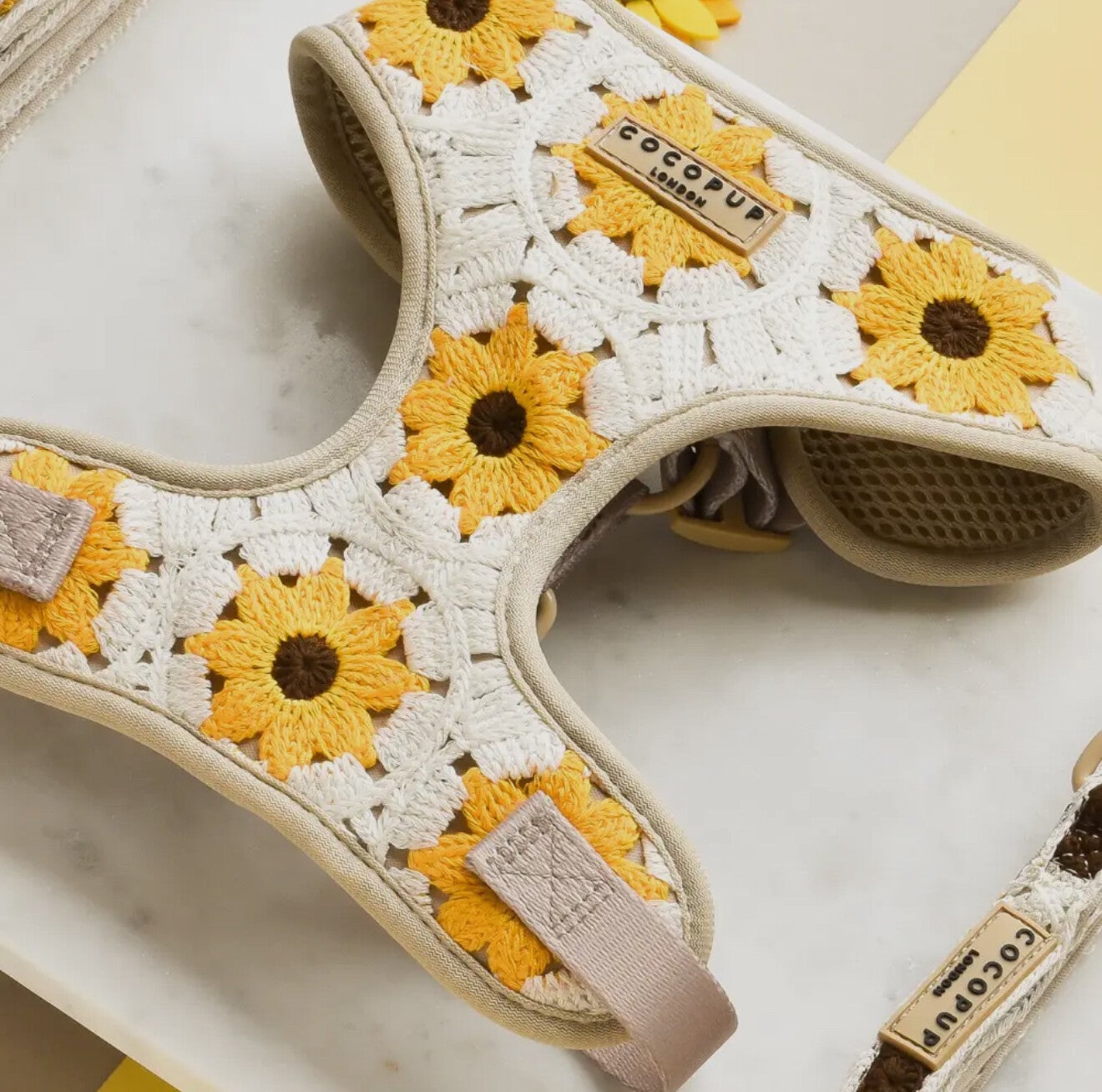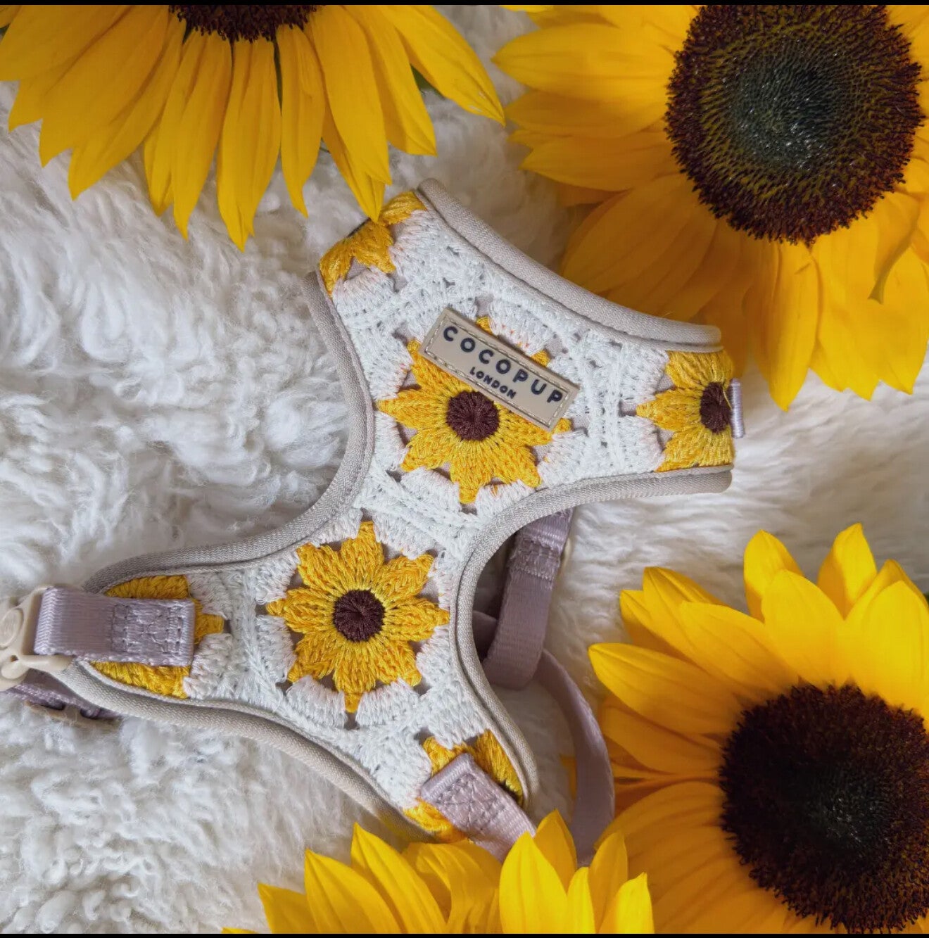 Geh mit deinem Hund stilvoll spazieren - mit unserem wunderschönen, verstellbaren Nacken-gurt im charmanten Sonnenblumen-Design.