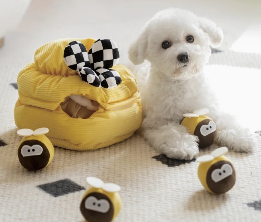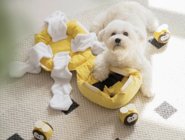 Interaktive Beschäftigung: Dein Hund wird motiviert, die Bienen herauszuziehen, um an die Leckerlis zu gelangen.