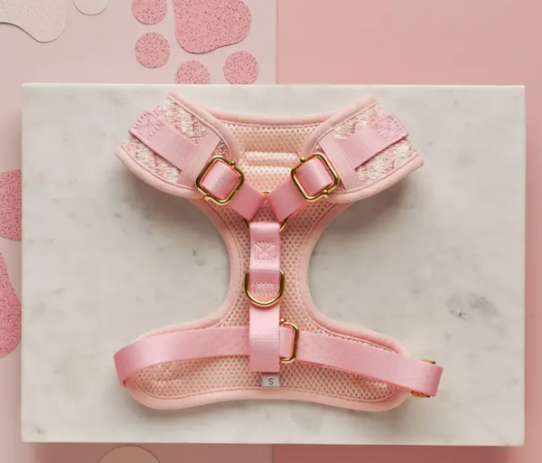 Süß, stilvoll und praktisch – das rosa strukturierte Tweed-Geschirr ist die perfekte Wahl für alle Fashion-Pup-Mamas (und Papas), die Stil mit Komfort verbinden möchten.